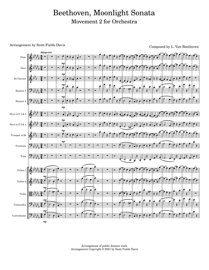 Experience the playful elegance of Beethoven’s Moonlight Sonata, Movement 2, reimagined for symphony orchestra. This arrangement brings out the light, dance-like character of the movement, transforming its gentle piano lines into a charming orchestral dialogue. Perfect for listeners who appreciate Beethoven’s wit and grace in a new light. .