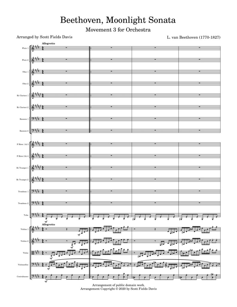 Ludwig van Beethoven (1770-1827) is one of the world’s most admired and celebrated composers. The fast, dramatic, and turbulent finale of one of Beethoven’s most well-known sonatas. This arrangement unleashes the full power and intensity of the symphony orchestra.