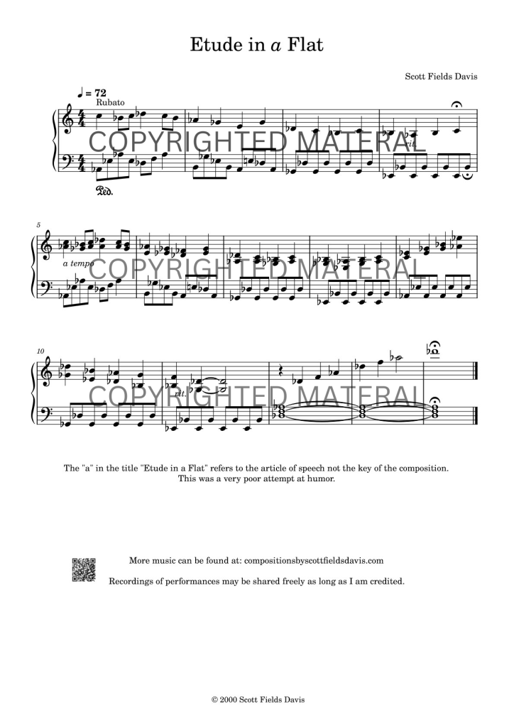 ” Etude in a Flat ” is an original composition by Scott Fields Davis.