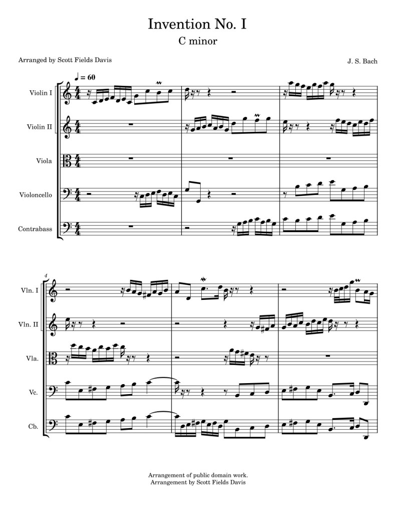 The Inventions might just be J.S. Bach’s most well-known piano compositions. Whether you are a student or a professional, if you are a pianist, you have played a few of them. Composed by Johann Sebastian Bach (1685-1750) and arranged for chamber orchestra by Scott Fields Davis.