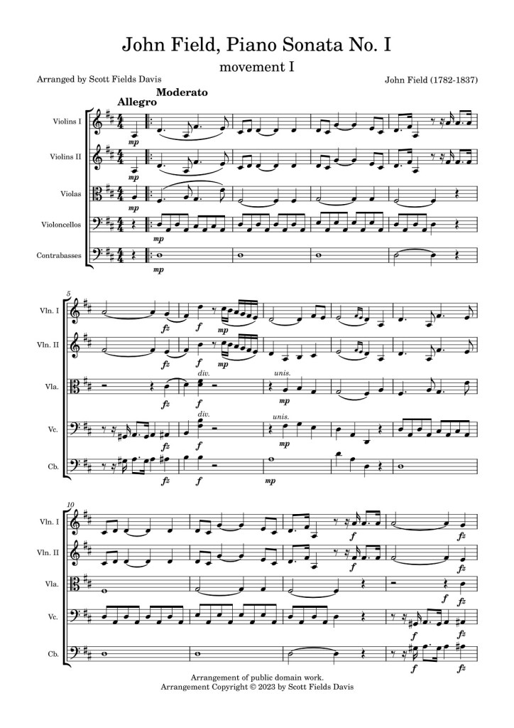 This is an orchestral arrangement of movement 1 of the first of four piano sonatas written by John Field.
