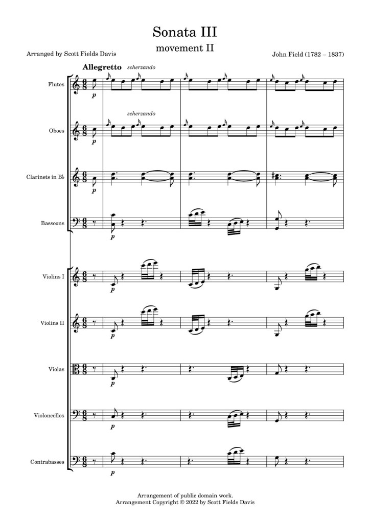 This is an orchestral arrangement of the second movement of the third of four piano sonatas written by John Field arranged for orchestra by Scott Fields Davis.