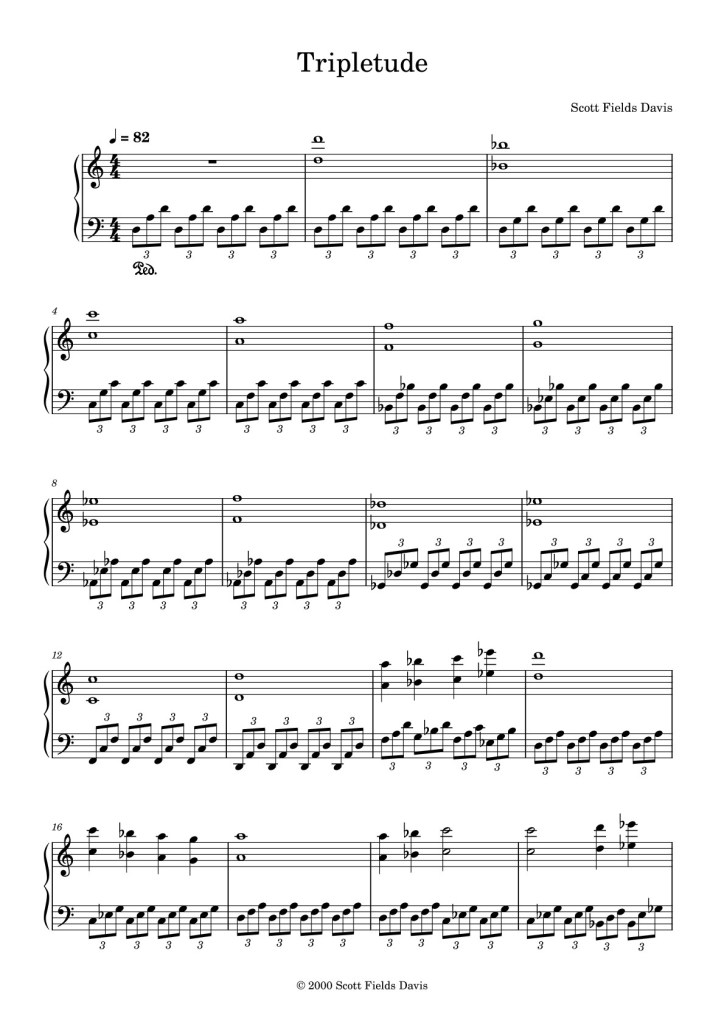“Tripletude” is an easily accessible piece emphasizing the use of octave doubling in the right hand and triplets in the left. The name of the composition, “Tripleute“, is a combination of the words Triplet and Etude.